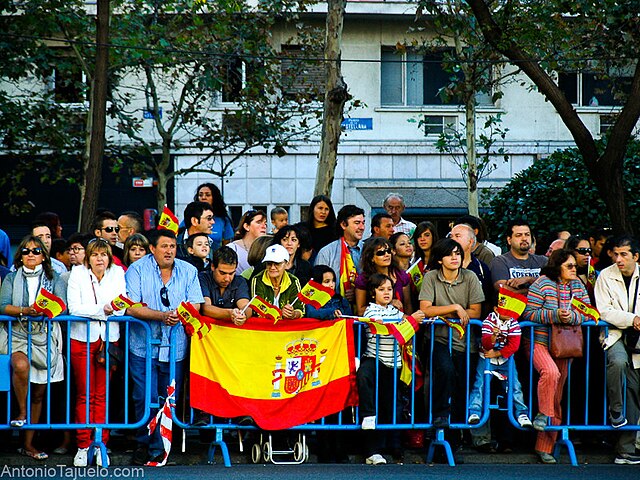 El pasado 12 de Octubre la capital se ha vestido de gala para celebrar la Fiesta Nacional con el tradicional desfile militar en el Paseo de la Castellana, que este año ha reunido a más de 3.850 efectivos de las Fuerzas Armadas, Fuerzas y Cuerpos de Seguridad del Estado y otras instituciones. Las condiciones meteorológicas no fueron las mejores, pero miles de personas acudieron a las calles para mostrar su apoyo y orgullo nacional.